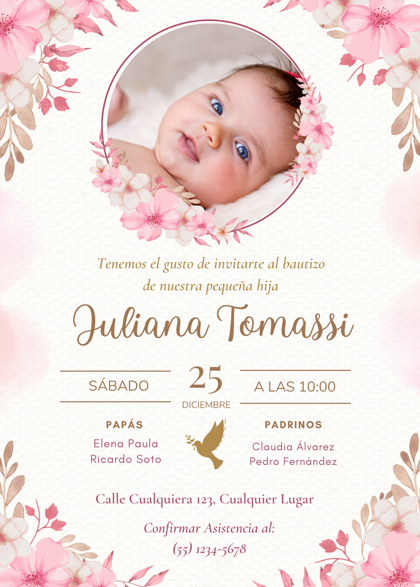 Con tarjetas de bautizo para editar e imprimir gratis tienes la oportunidad de asegurarte de personalizarla al máximo y que salga por la impresora de la misma forma que se aprecia en la pantalla, sin cambios o problemas de formato o color.